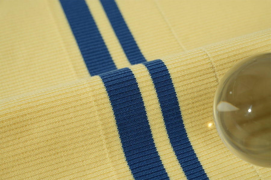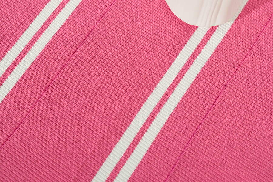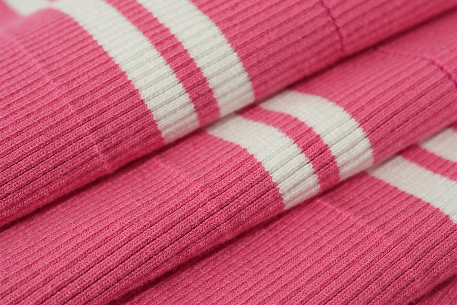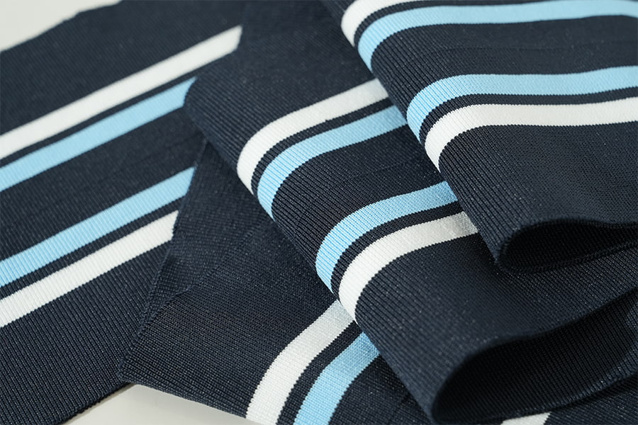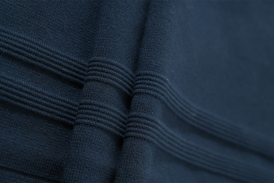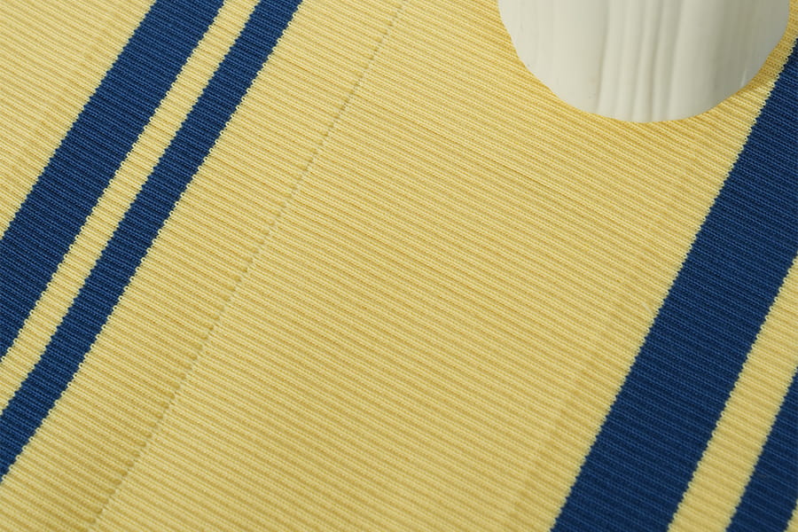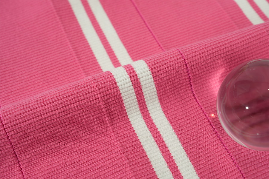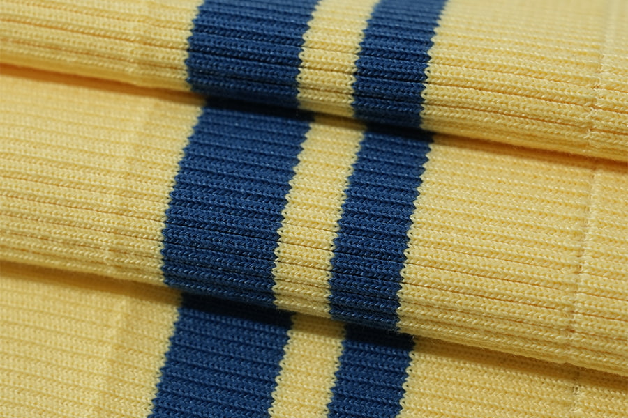 2. Polyester ribgebreid : Een modern wonder In tegenstelling tot de tijdloze uitstraling van katoenen ribstof, vertegenwoordigt polyester ribbreisel een eigentijds wonder van textieltechniek, gekenmerkt door zijn veerkracht, prestaties en veelzijdigheid. Deze gebreide stof is samengesteld uit synthetische polyestervezels en heeft een opvallende geribbelde textuur die doet denken aan zijn katoenen tegenhanger, zij het met verbeterde sterkte en duurzaamheid. Ribgebreid polyester belichaamt de combinatie van stijl en functionaliteit en voldoet met ongeëvenaarde efficiëntie aan de eisen van de moderne levensstijl.